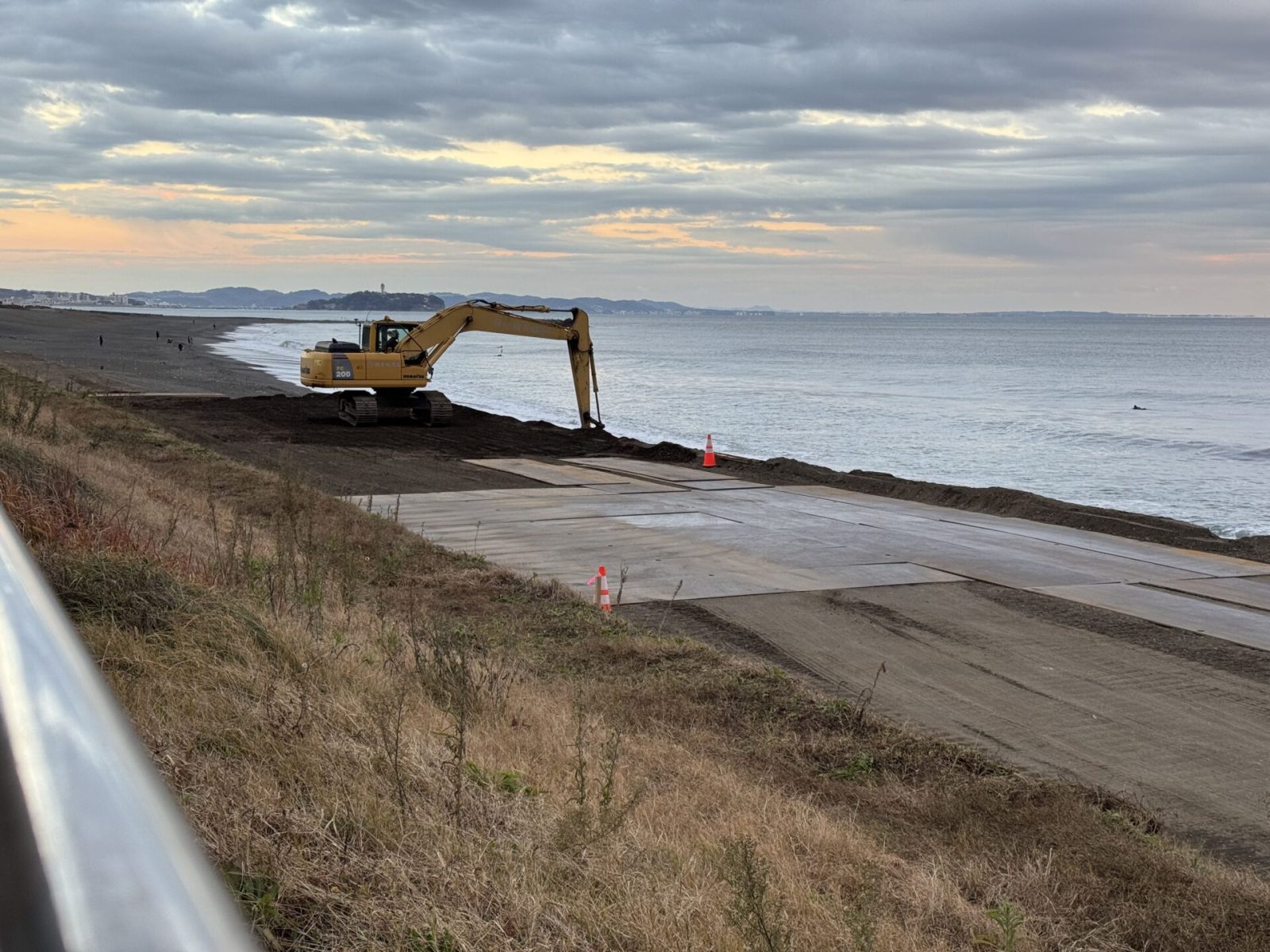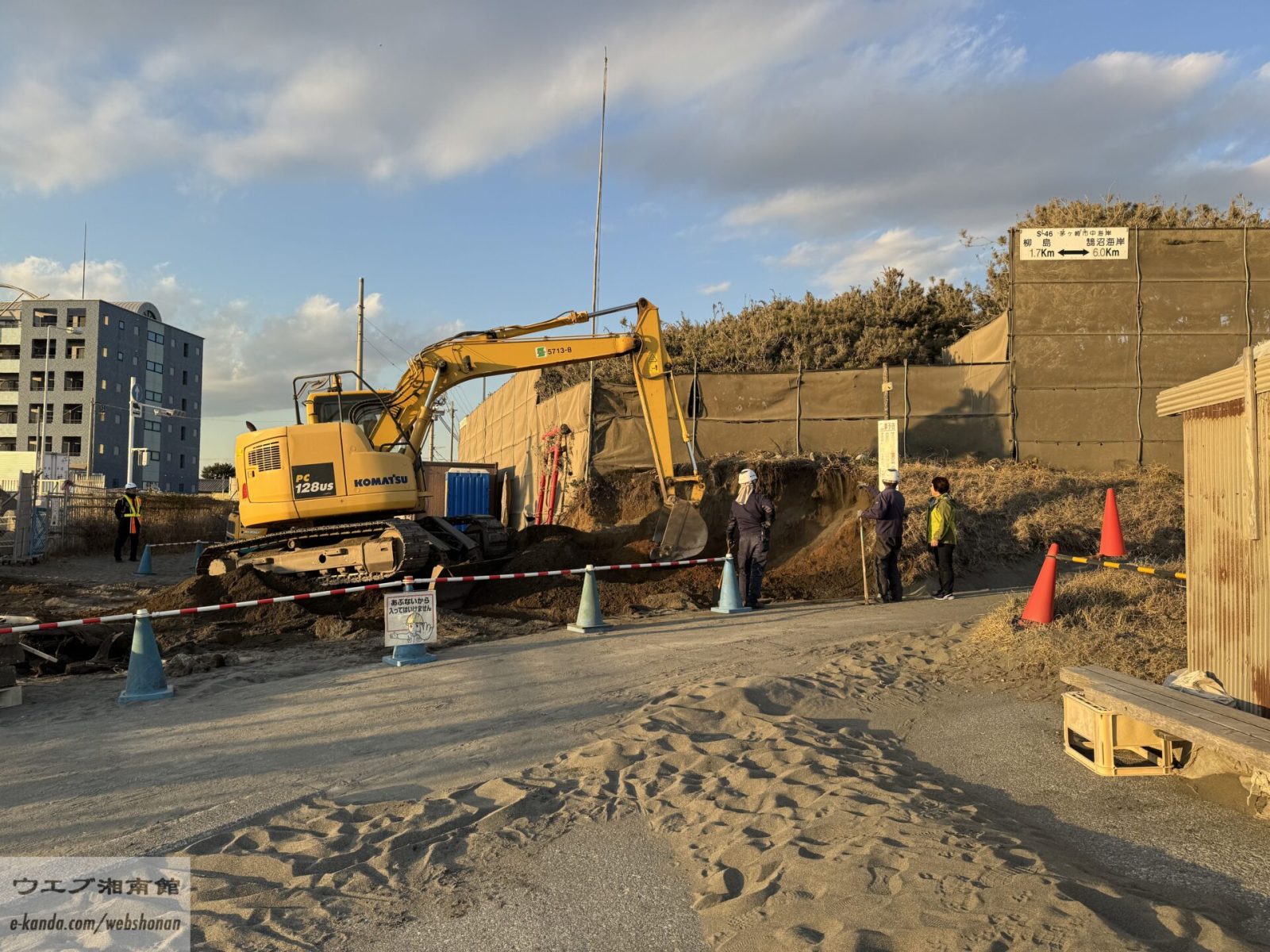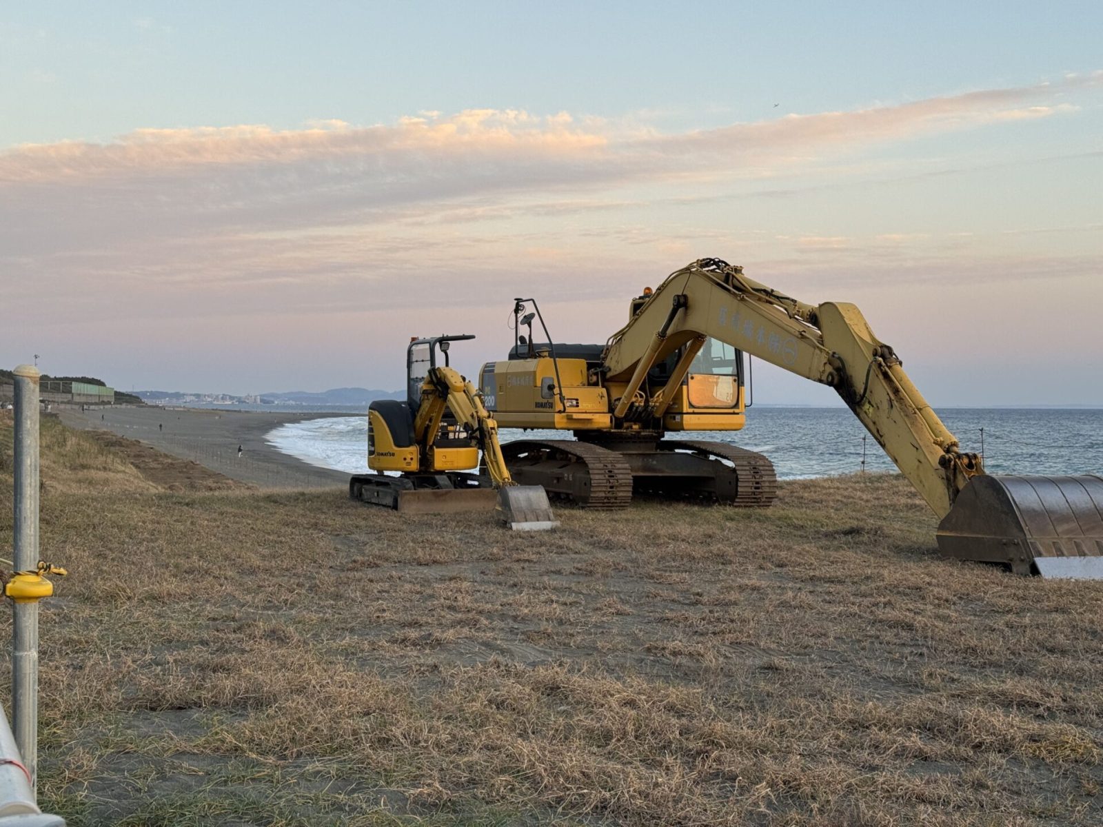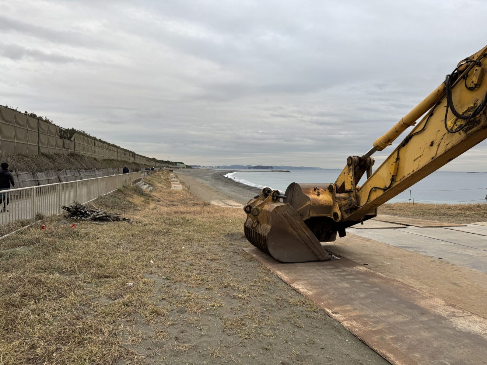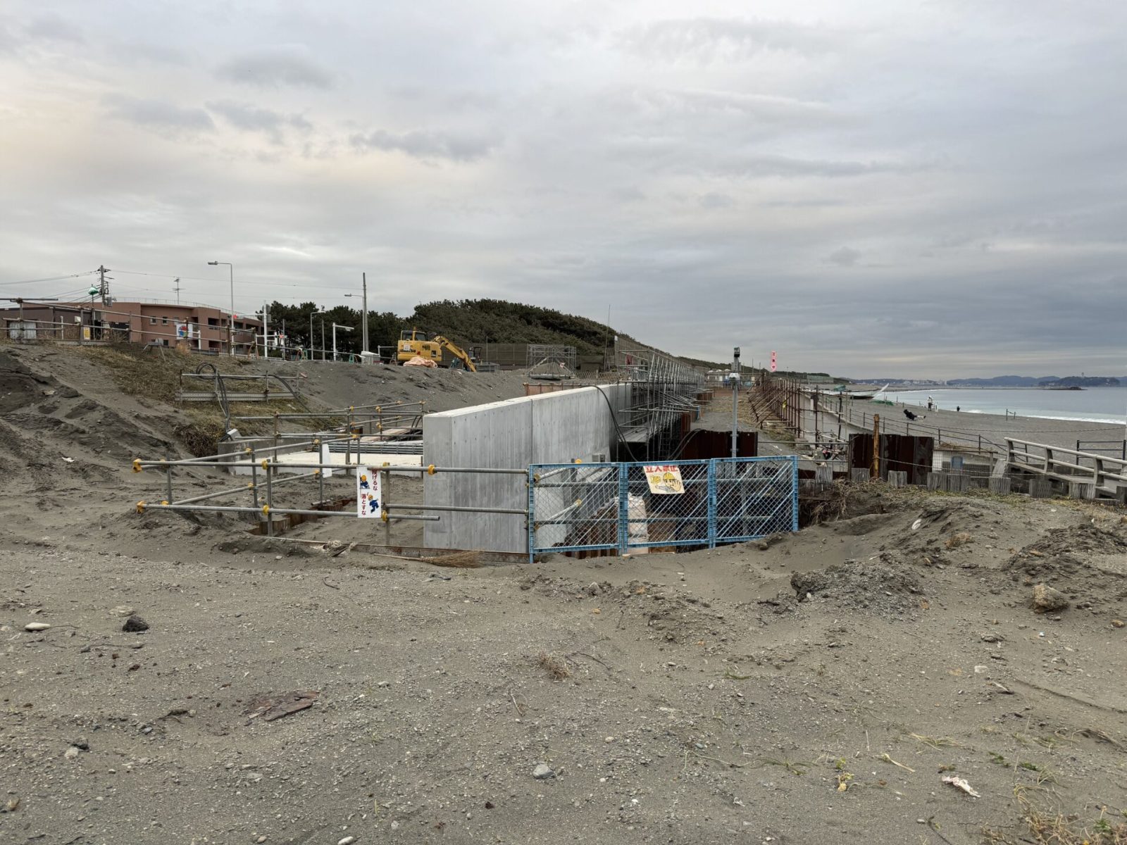 菱沼海岸東にある工事現場。シャベルカーが一休み。