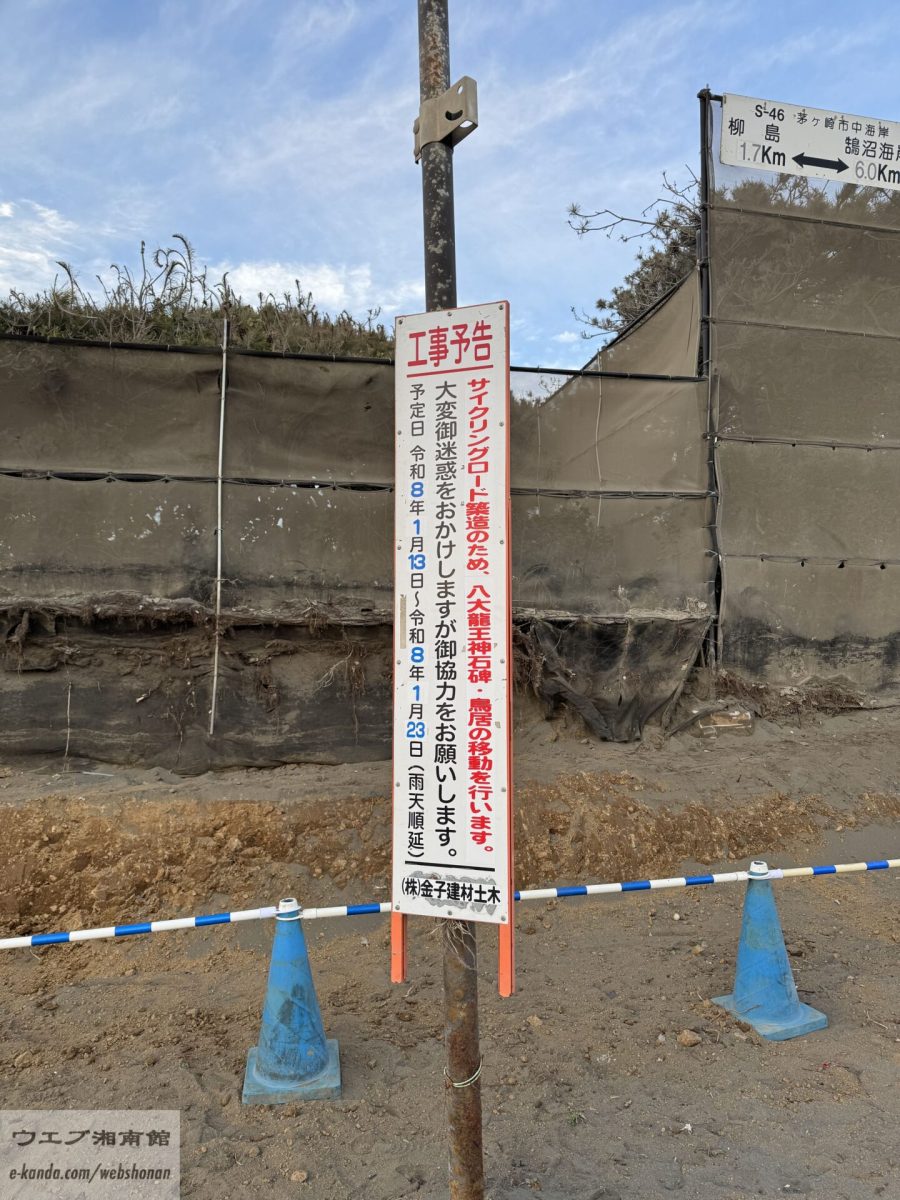 八大龍王神と茅ヶ崎サザンCとの間のサイクリングロードの直線化の工事も佳境かな。次第に姿を現してきた感じ。
