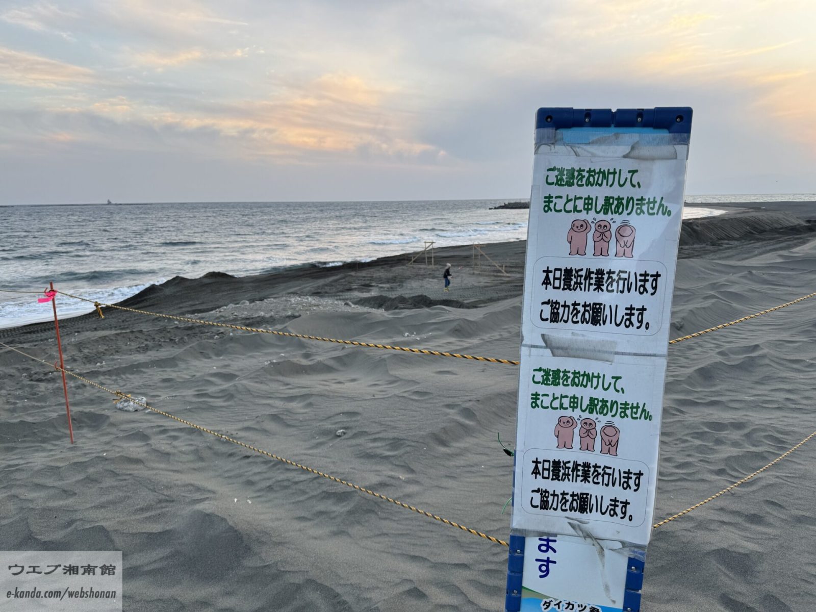 菱沼海岸にあるベンチで見掛けた警告書。