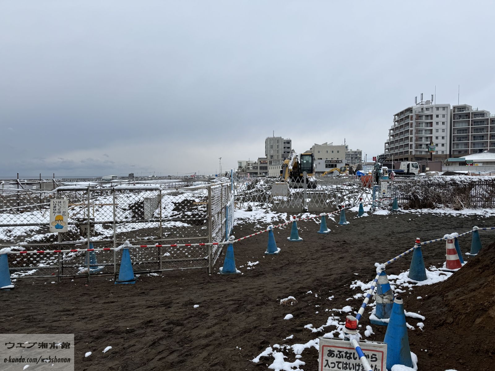 湘南海岸にもこの冬、雪らしい雪が初めて降った翌日。