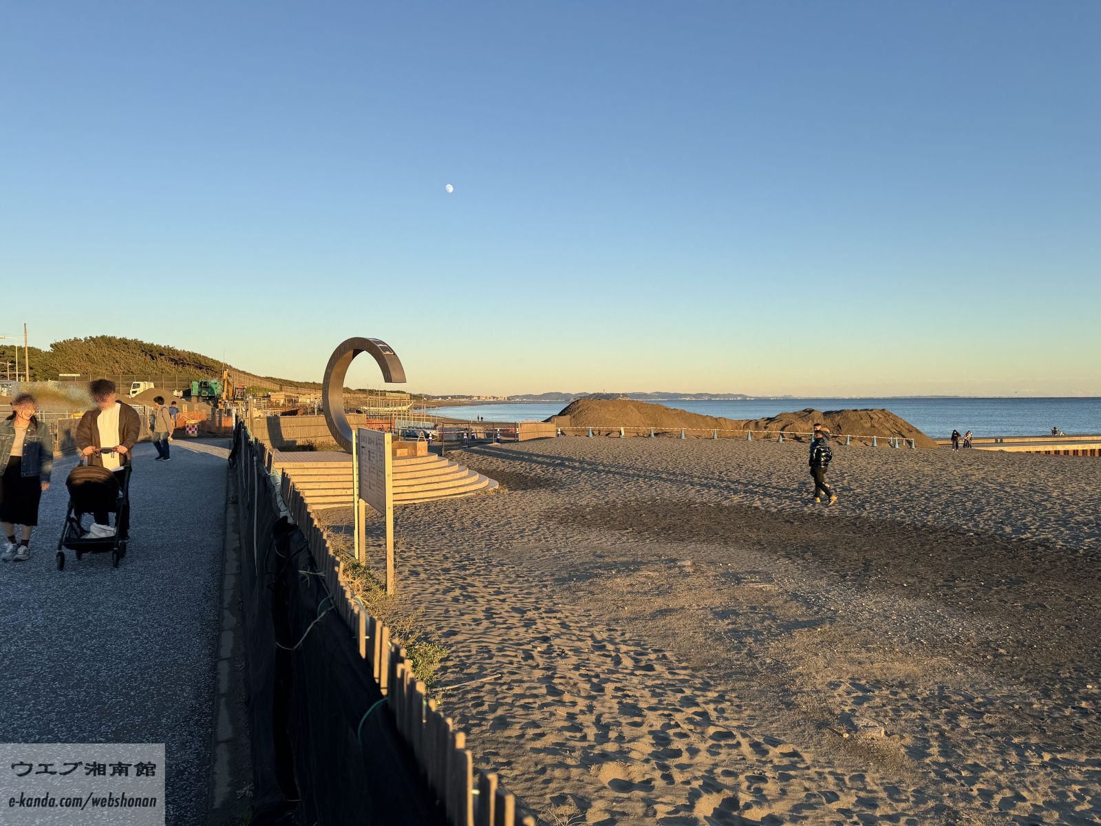 三連休最後の午後。人影は控えめで、観光地の喧騒は感じられない。ベビーカーを押しながら散策する夫婦連れ。地元の海に戻った湘南。
