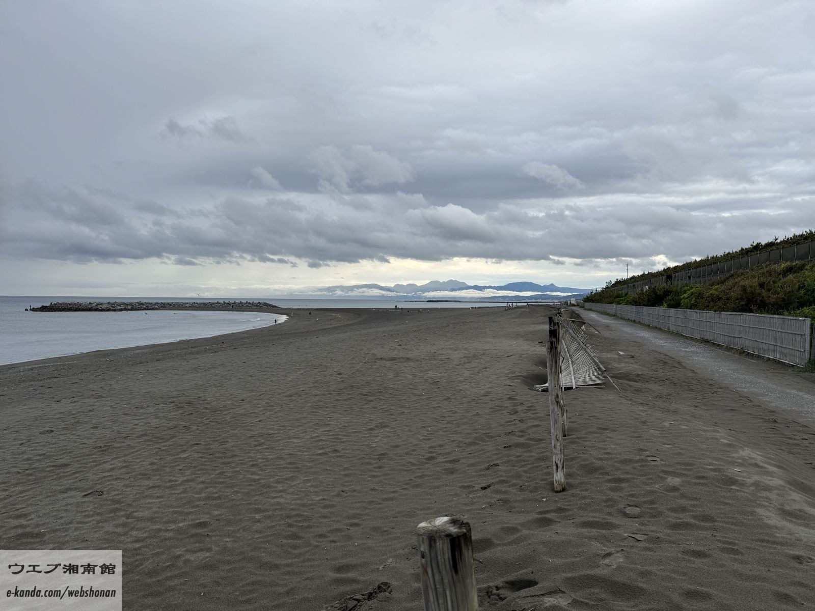 午後の光が柔らかく差す浜辺。足跡が砂に刻まれ、人々の気配が湘南の風景を彩ります。