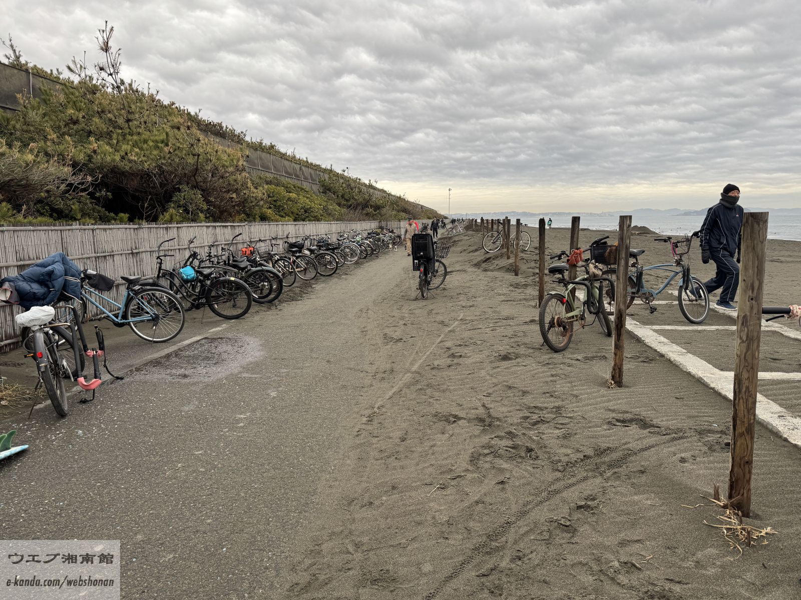 サイクリングロードを守る防砂柵、海側はご覧の通り「戦いの跡」