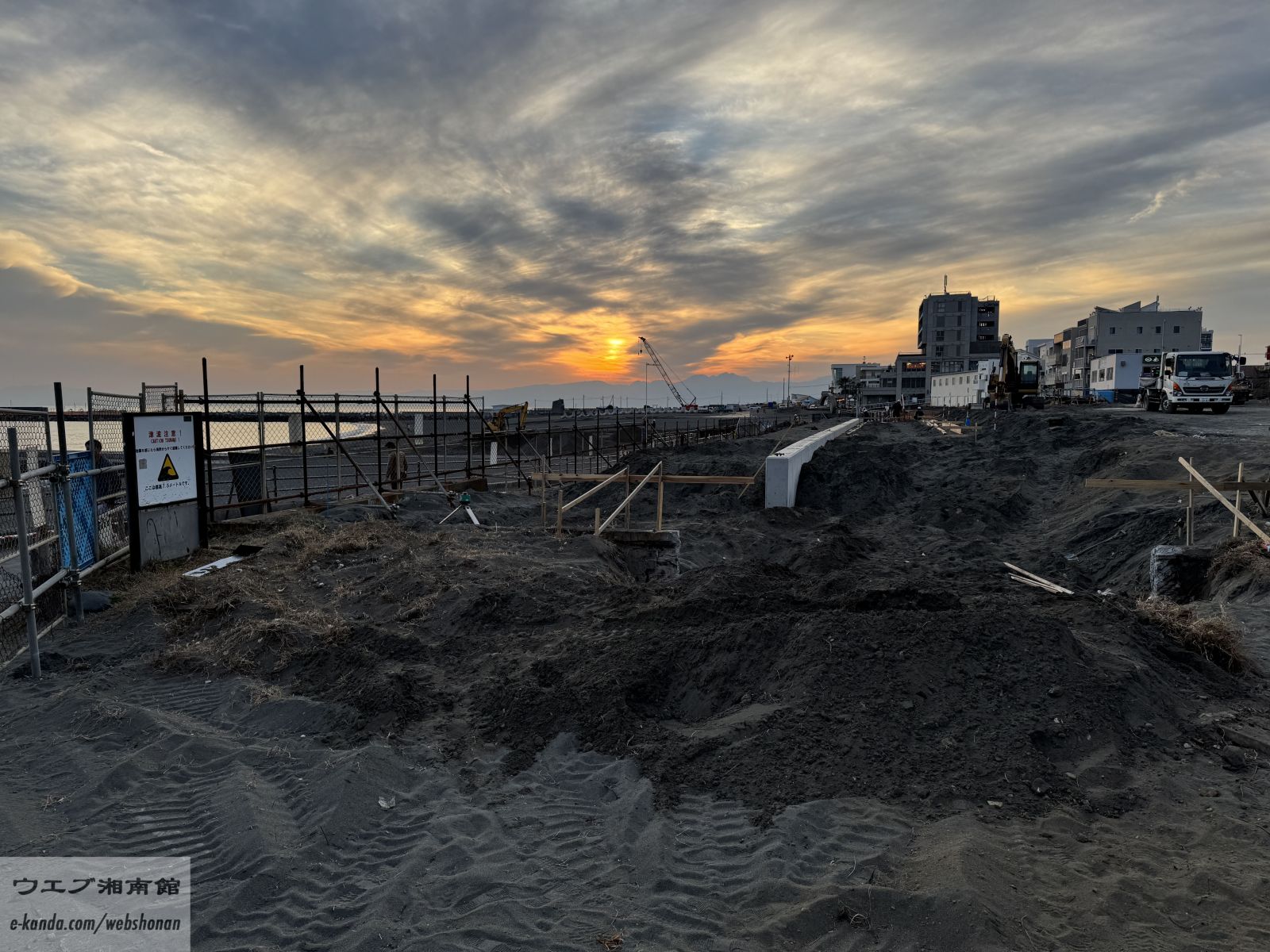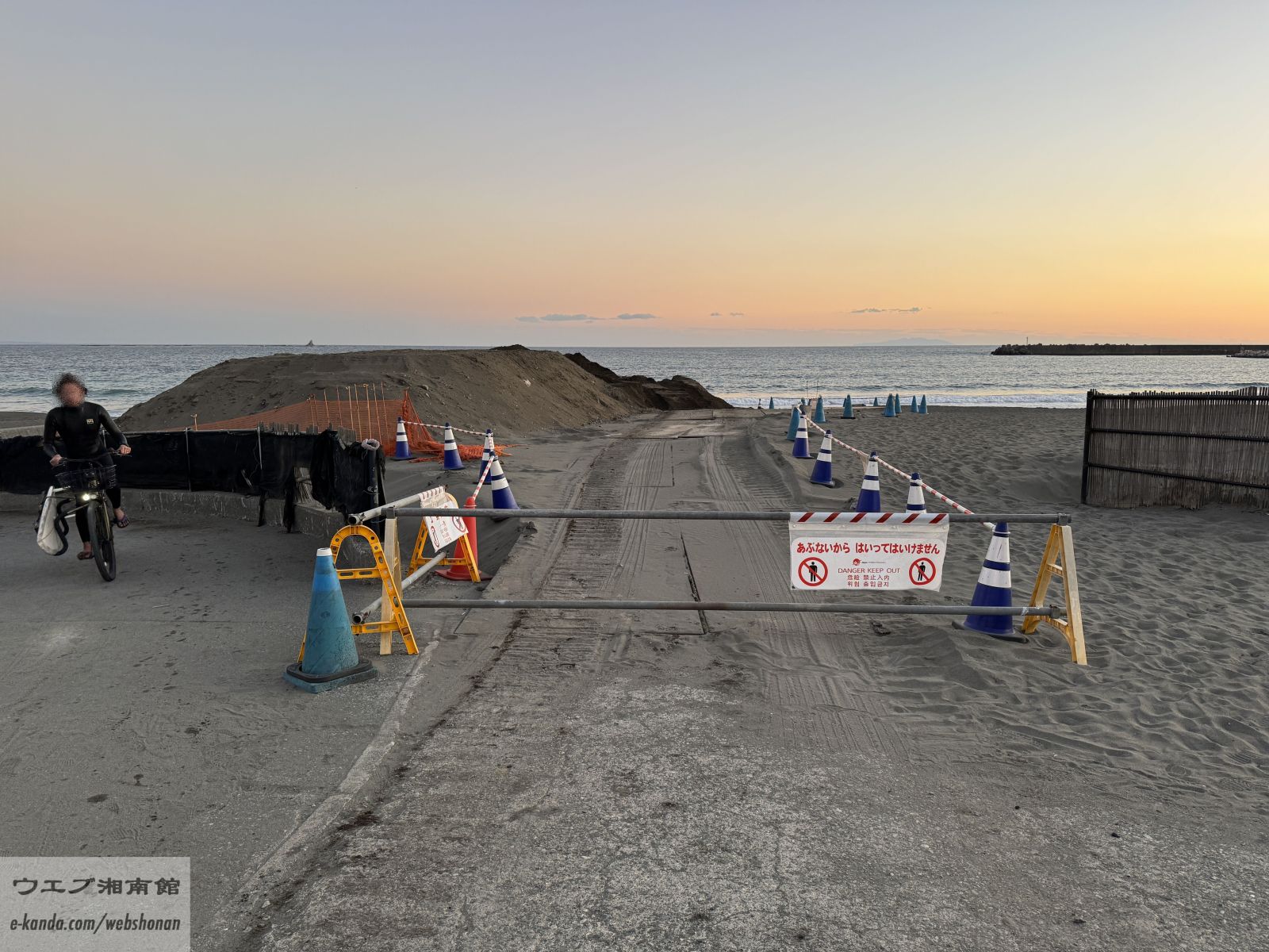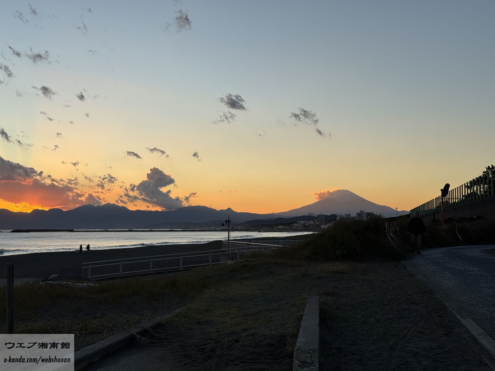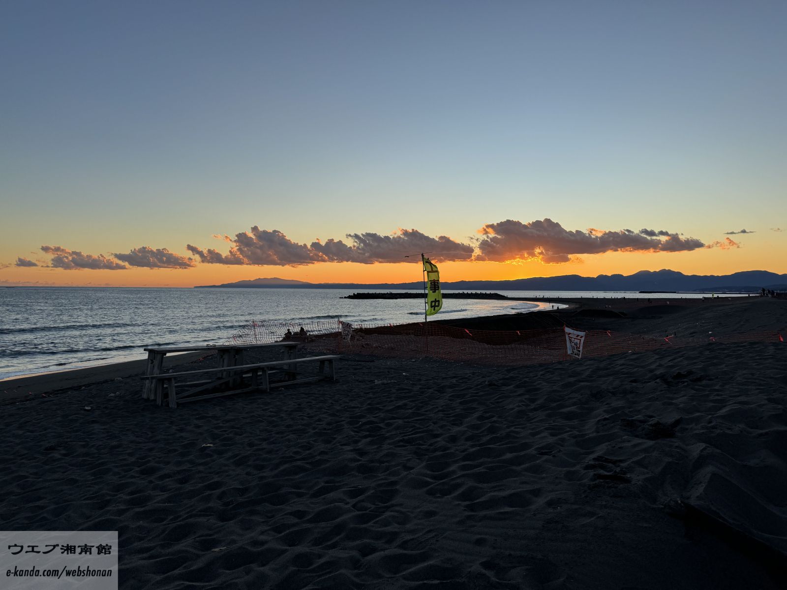 夕刻5時。日中の暑さが少し和らぎ、砂浜に心地よい風が吹き抜ける時間帯です。茅ヶ崎の海岸では、この時間になると防災放送から「赤とんぼ」のメロディが流れ、一日の終わりを告げるのが冬の定番。