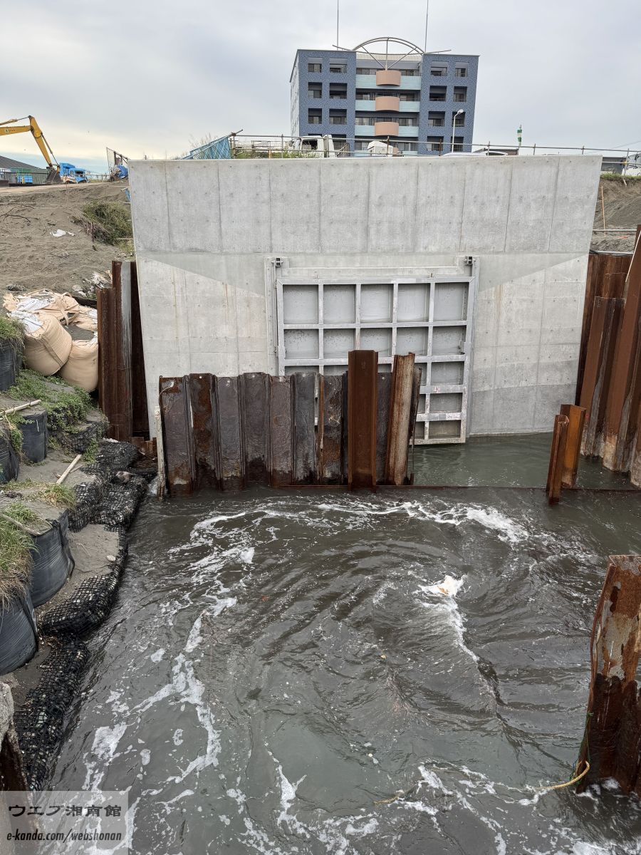 菱沼海岸から東方面を眺める。しばらく前から立入禁止区域となっており、遠くには江ノ島が見える。